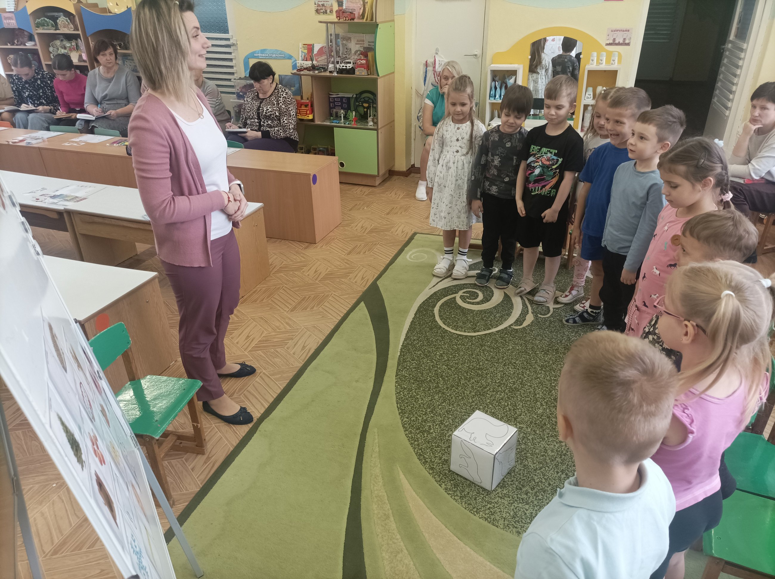 В рамках реализации годовой задачи (развитие связной речи воспитанников посредством использования методов визуализации в специально организованной деятельности) воспитатель дошкольного образования Матяс В.Ю. провела для коллег открытый просмотр занятия по образовательной области "Развитие речи и культура речевого общения" в разновозрастной группе (от 4 до 6 лет) по теме "На помощь животным".