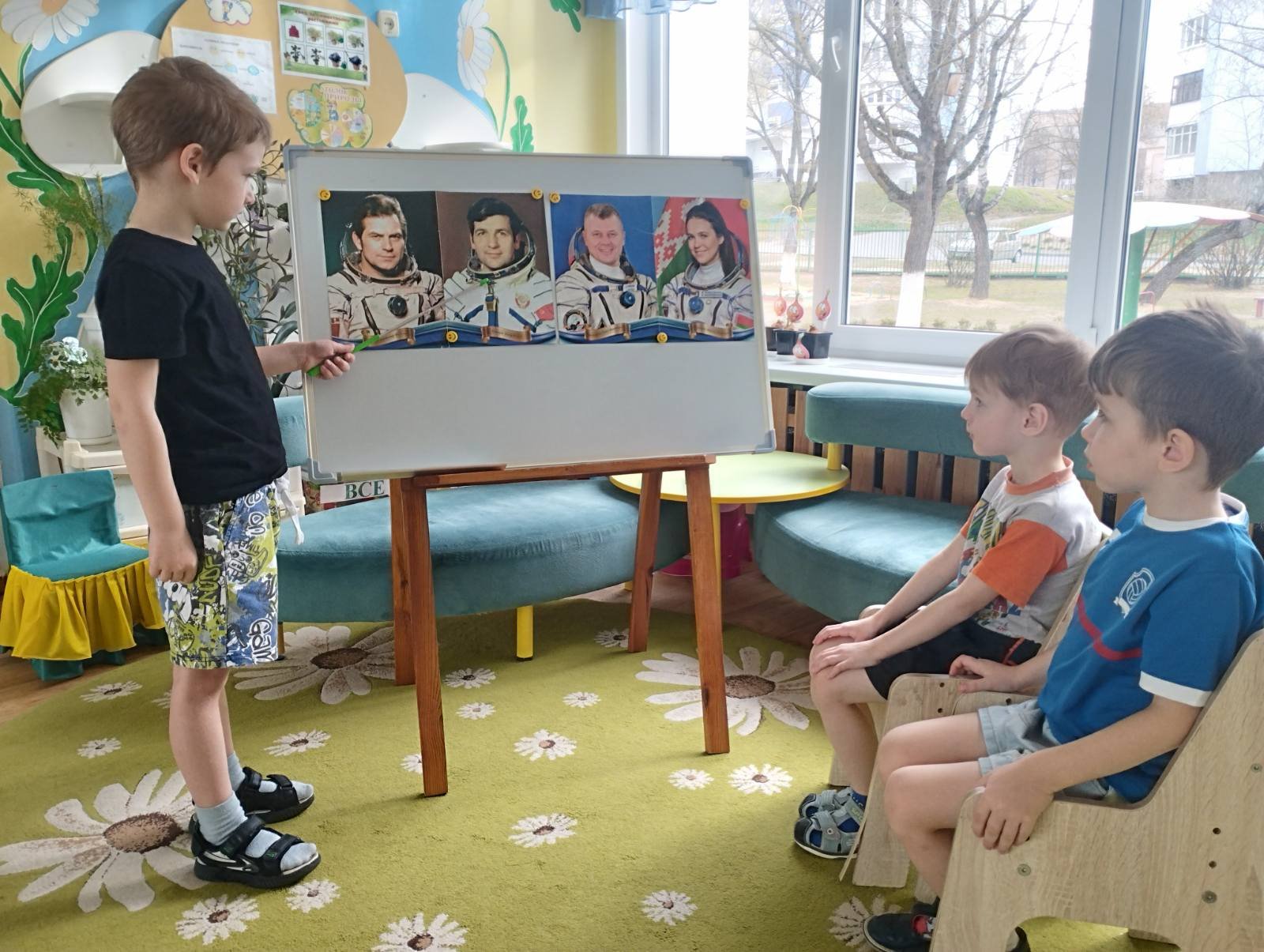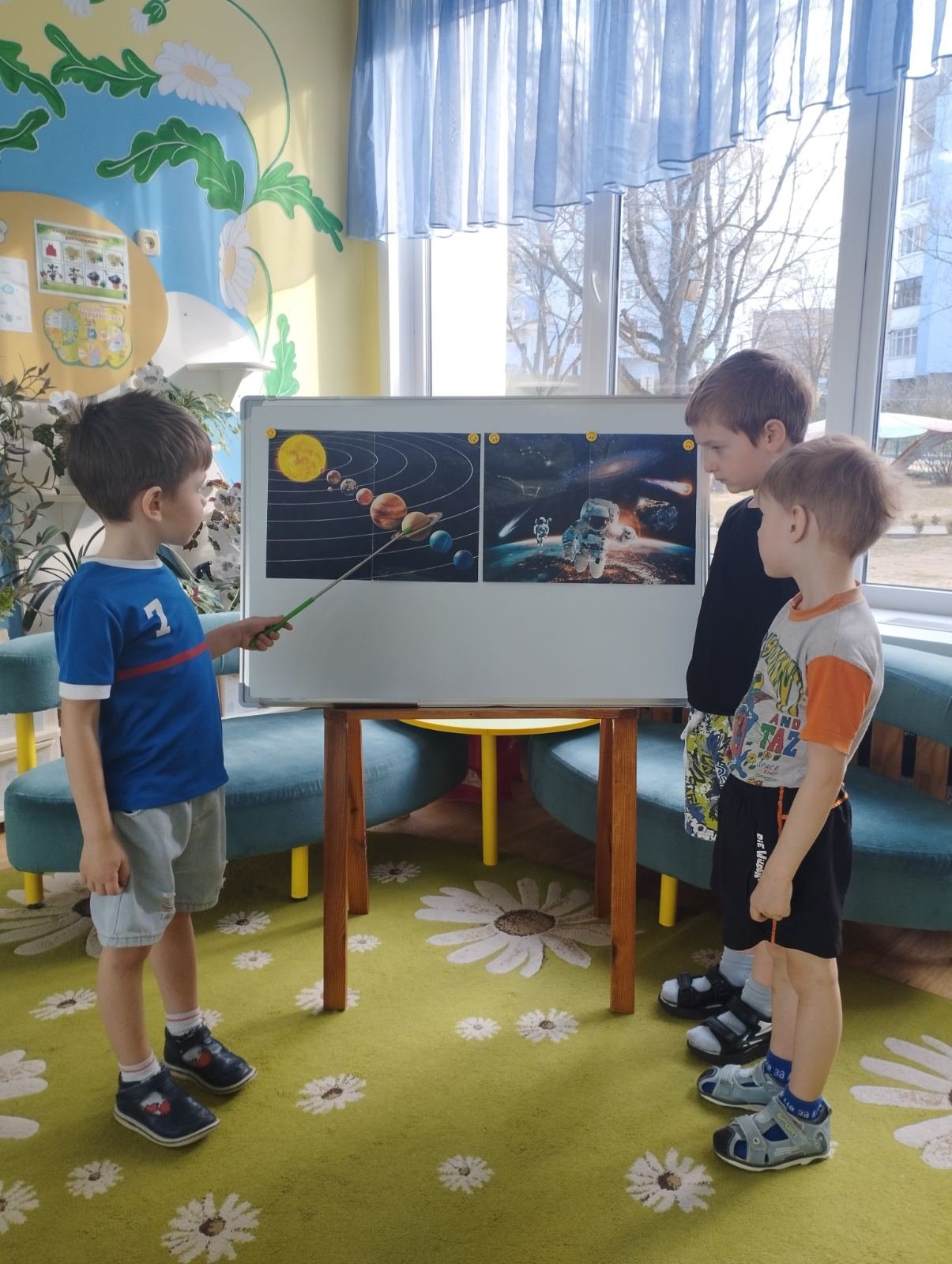 Наши воспитанники на день превратились в настоящих исследователей Вселенной. Педагоги подготовили для ребят увлекательные мероприятия. Ребята узнали о строении Солнечной системы, о первых «четвероногих космонавтах» Белке и Стрелке и, конечно, о подвиге первого космонавта Земли. Особое внимание уделили уроженцам Беларуси, покорившим космос, — Петру Климуку, Владимиру Коваленку и Олегу Новицкому, а также первой женщине-космонавту суверенной Беларуси Марине Василевской. В группах развернулись настоящие творческие мастерские. Дети с азартом мастерили макеты ракет техникой оригами, создавали красочные аппликации, рисовали планеты мелками на асфальте и лепили космические корабли.