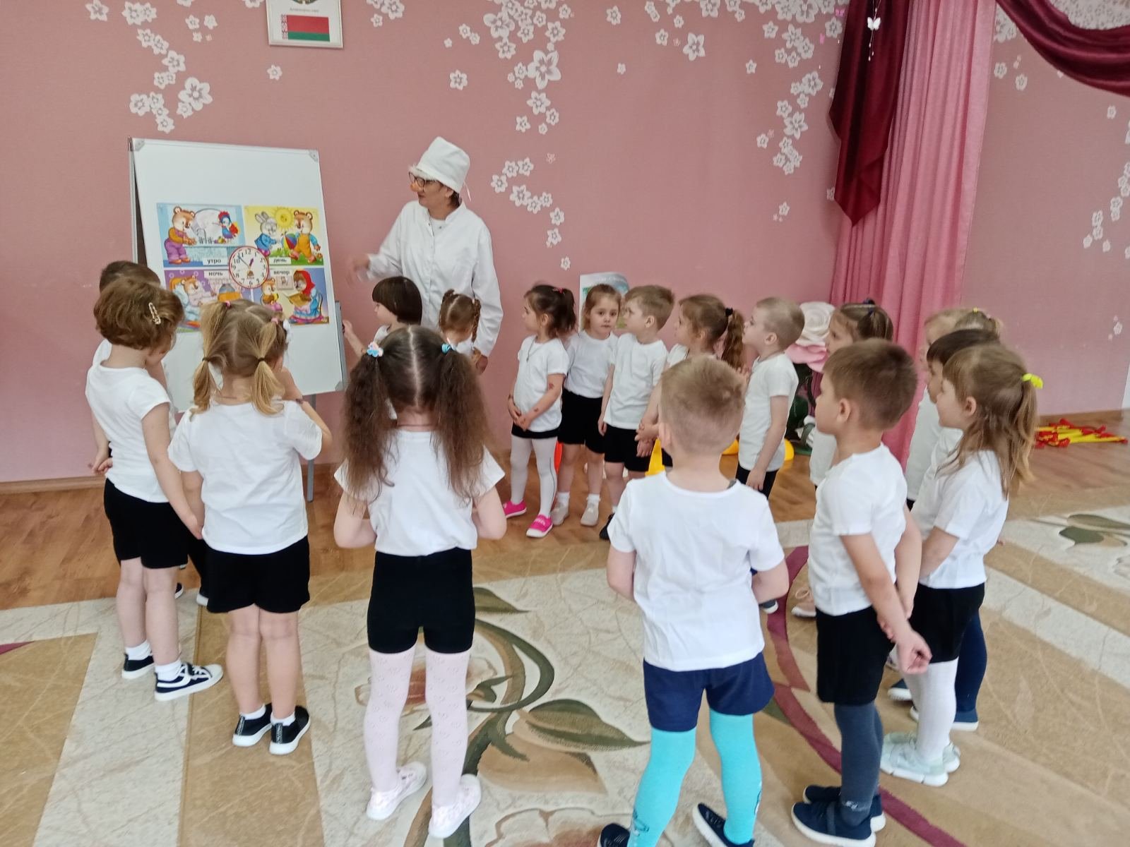 День начался с утренней гимнастики, которую провела веселая и задорная Витаминка. Дети получили заряд хорошего настроения на весь день.