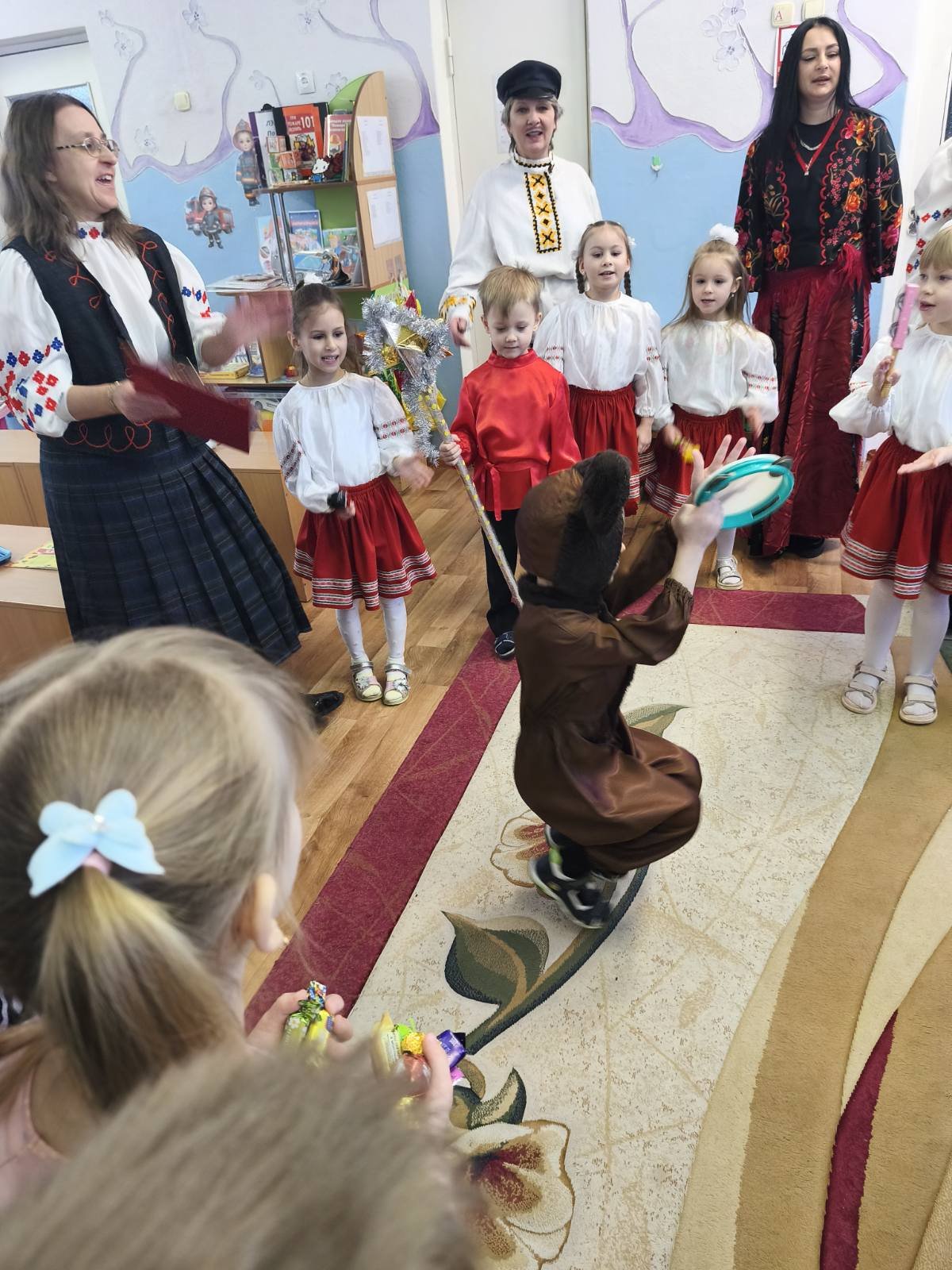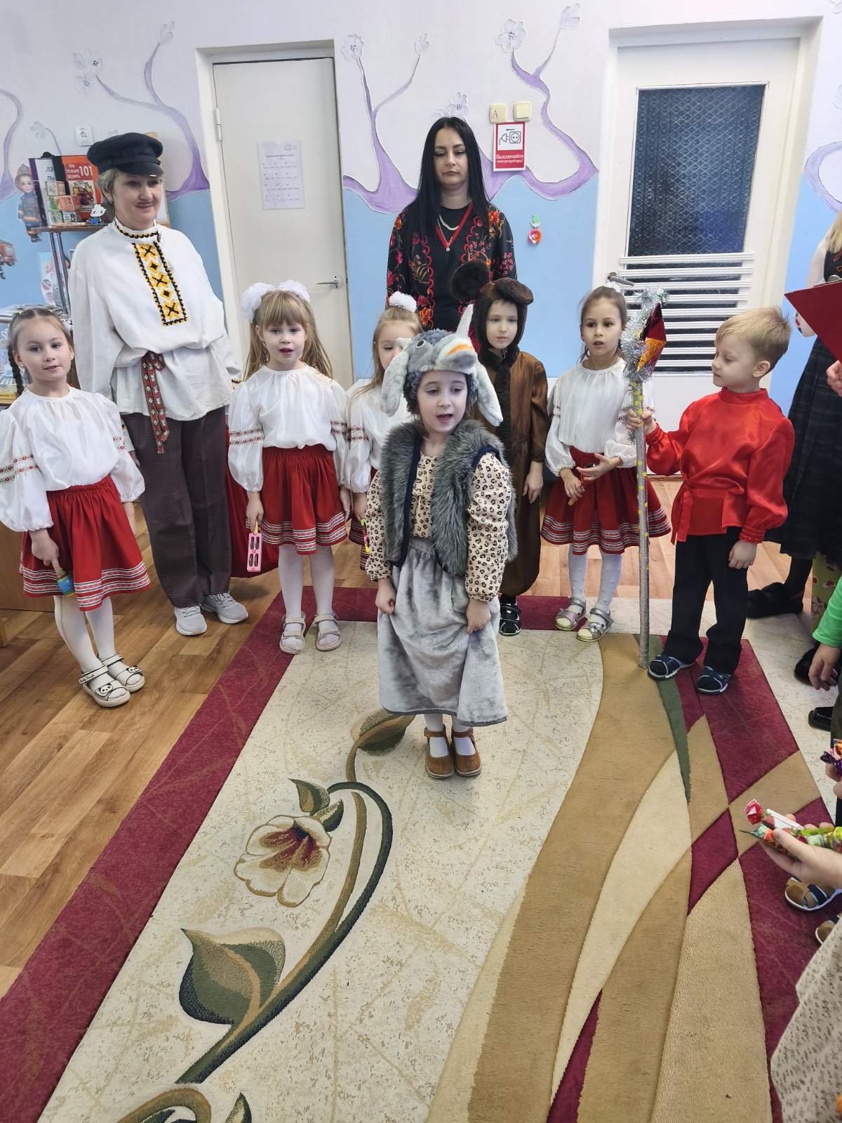 В нарядных костюмах, с песнями и закличками, с пожеланиями богатства и счастья ряженые обошли весь детский сад. Хозяева были щедры: угощали гостей сладостями.