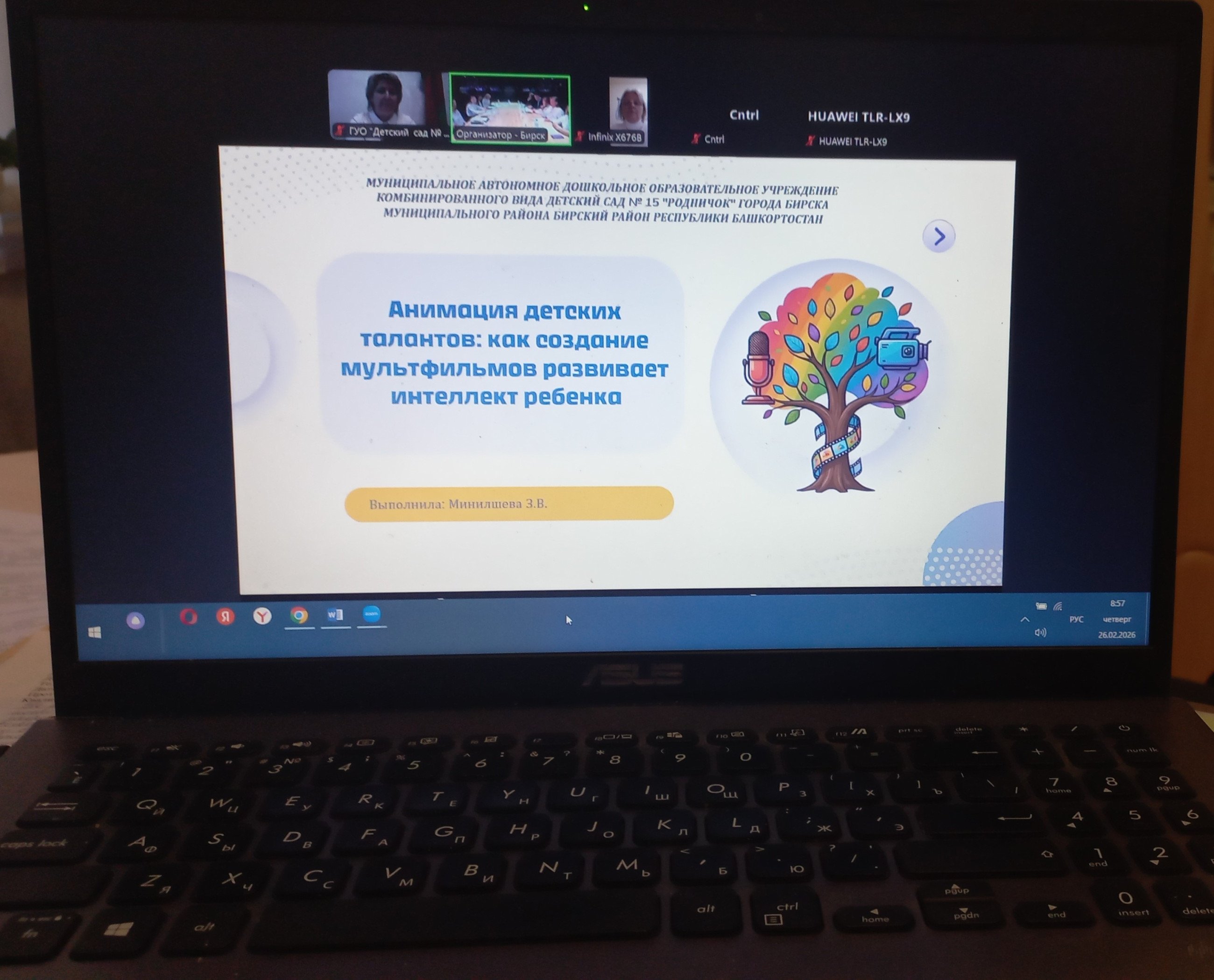 Сегодня, 26.02.2026 года, в рамках международного сотрудничества с МАДОУ "Детский сад № 15 "Родничок"" города Бирска Республики Башкортостан на республиканском семинаре "Актуальные вопросы развития интеллектуальных способностей у детей старшего дошкольного возраста посредством ментальной арифметики и других современных методик" были представлены материалы нашего детского сада - видеоролик "Исследуй. Познавай. Развивайся" (развитие интеллектуальных способностей детей старшешго дошкольного возраста через исследовательскую деятельность). Нашими коллегами из Республики Башкортостан были представлены материалы из опыта работы по развитию интеллектуальных способностей у детей старшего дошкольного возраста посредством ментальной арифметики, использования нейродинамических игр и упражнений, создания мультфильмов, использования палочек Кюизенера. Благодарим наших коллег за приглашение на семинар и за представленные материалы!!!!