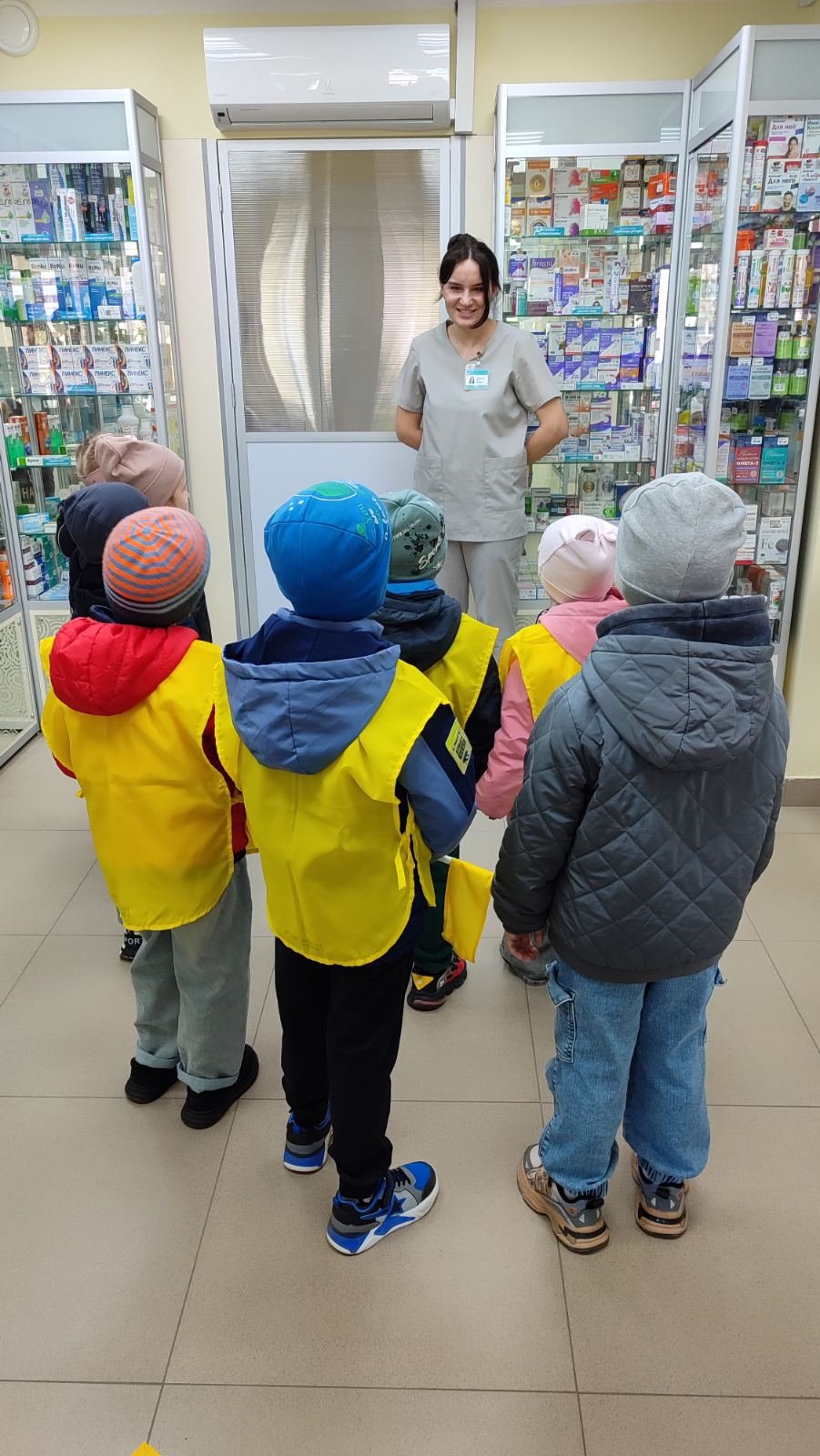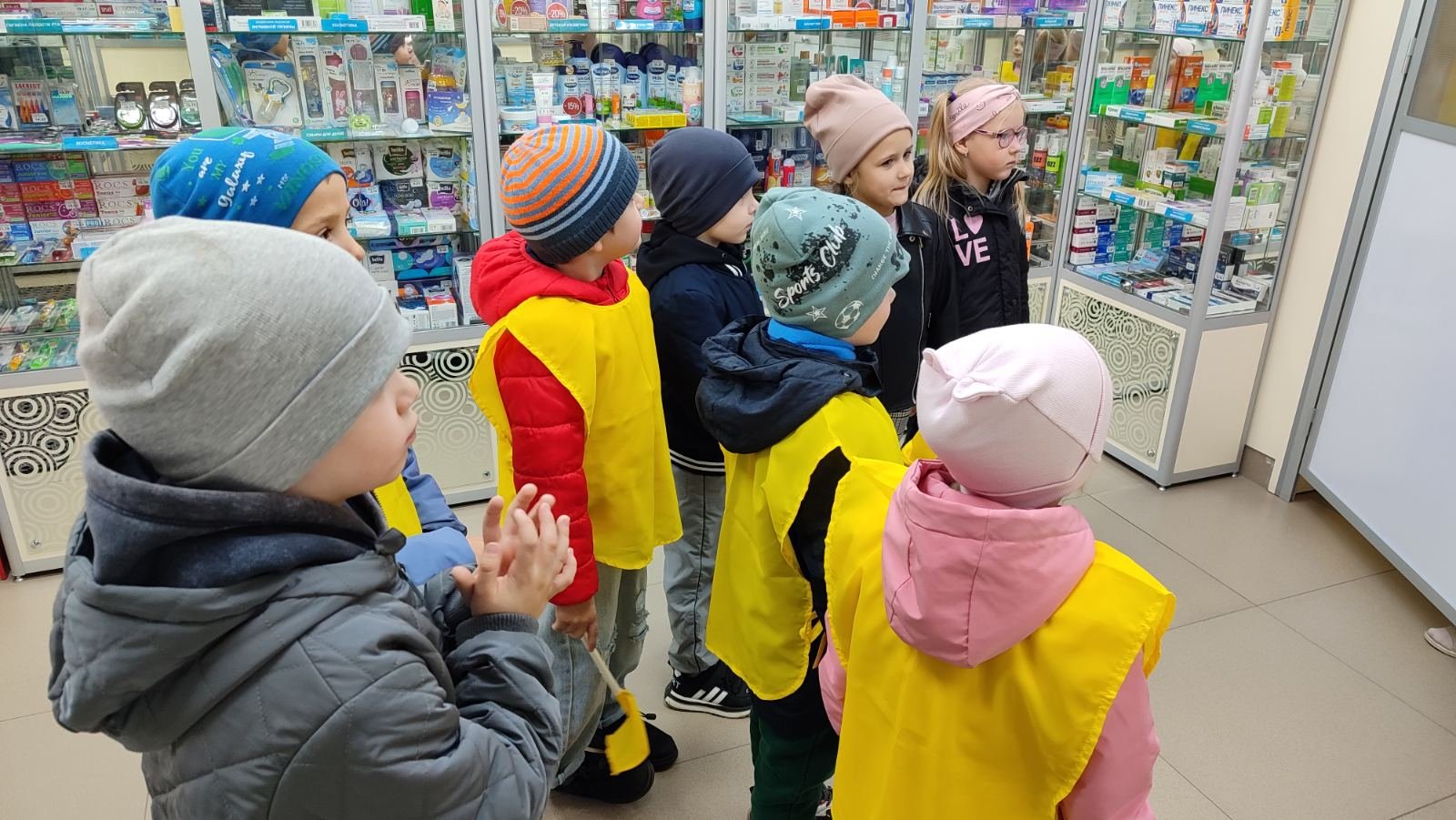 В ходе экскурсии дети увидели, как организовано рабочее место фармацевта и где хранятся лекарства; узнали, чем отличаются витамины от конфет и почему их нельзя принимать без разрешения взрослых; познакомились с ассортиментом товаров: от градусников и фиточаев до средств гигиены.
