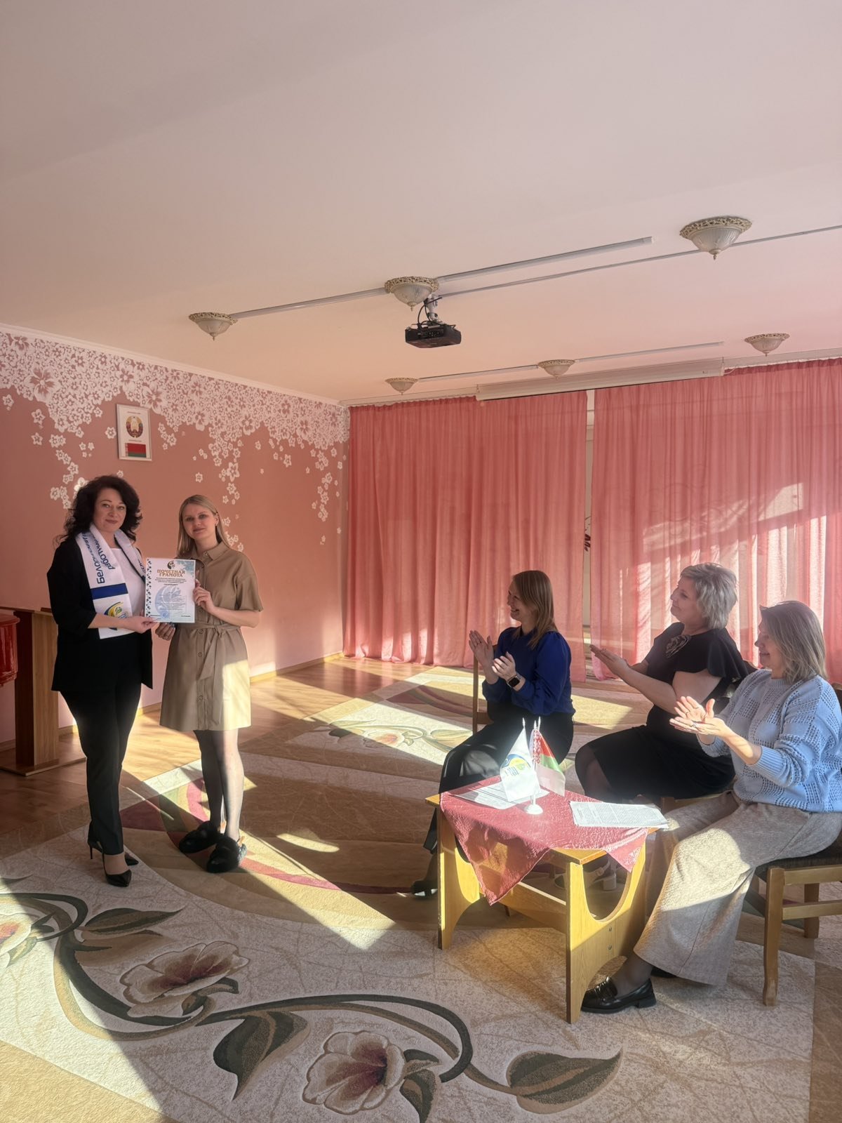 За активную работу в деятельности Профсоюза Пешко А. Ю. была награждена почетной грамотой Волковысской районной организации Белорусского профессионального союза работников образования и науки.