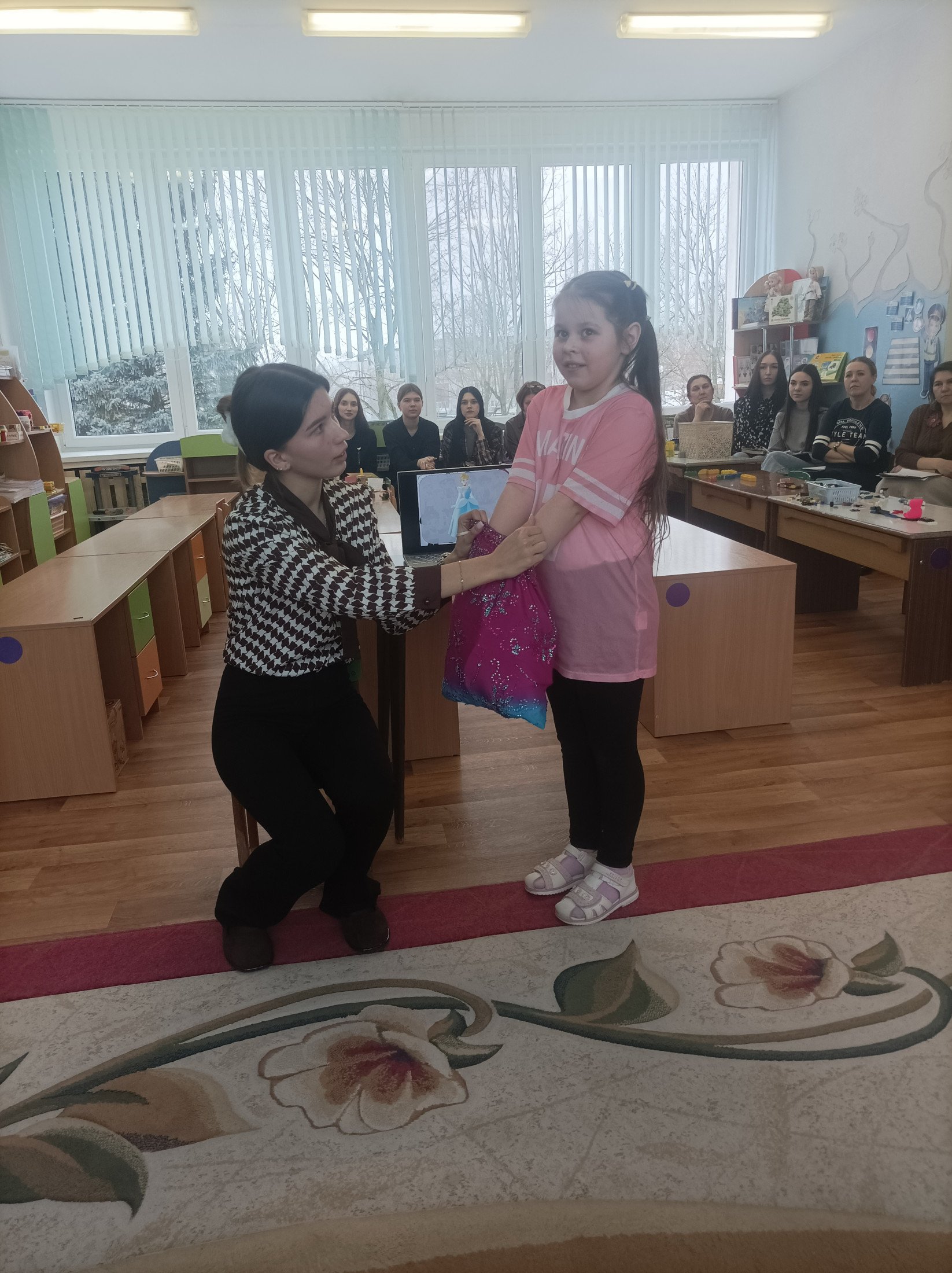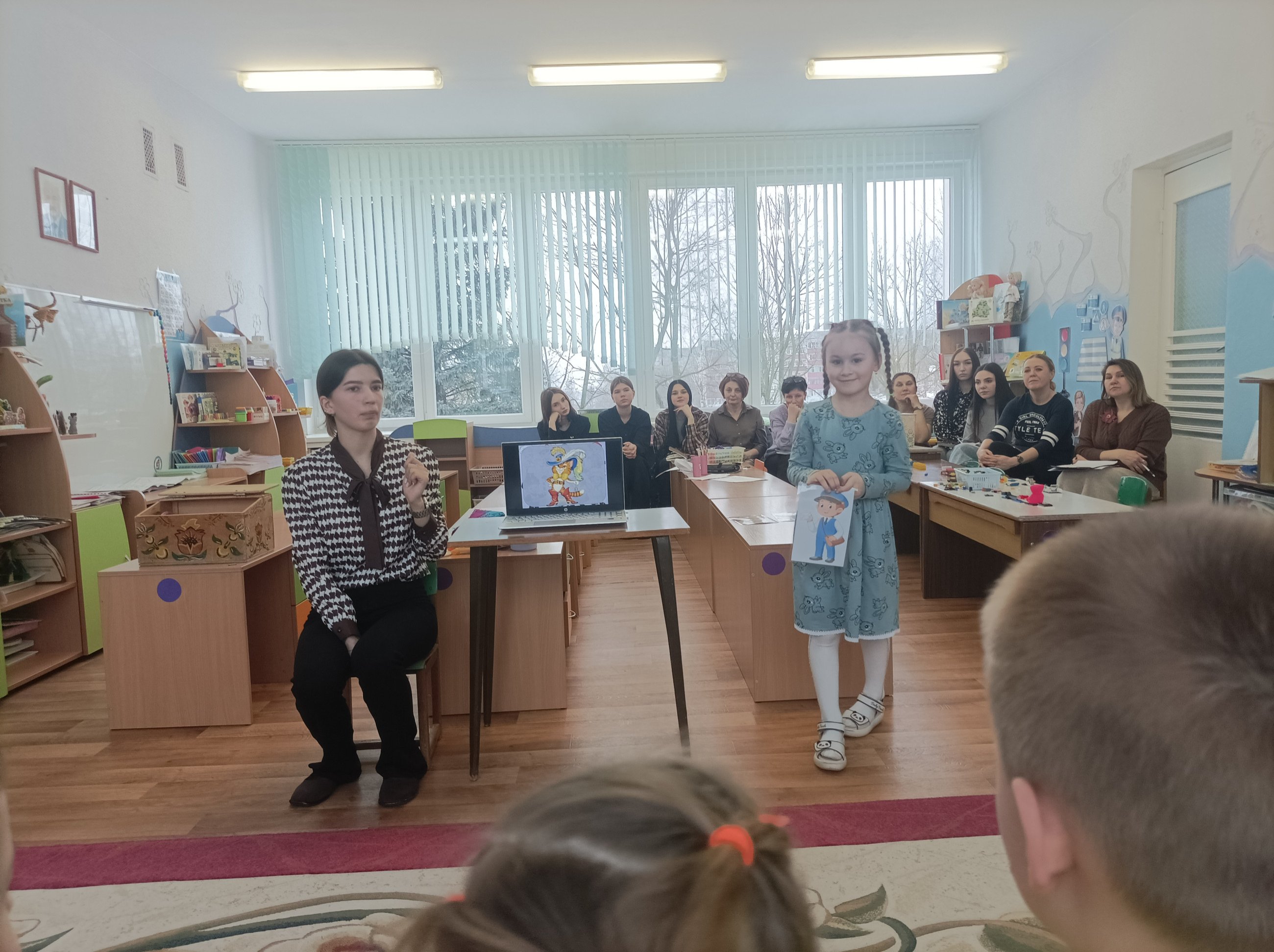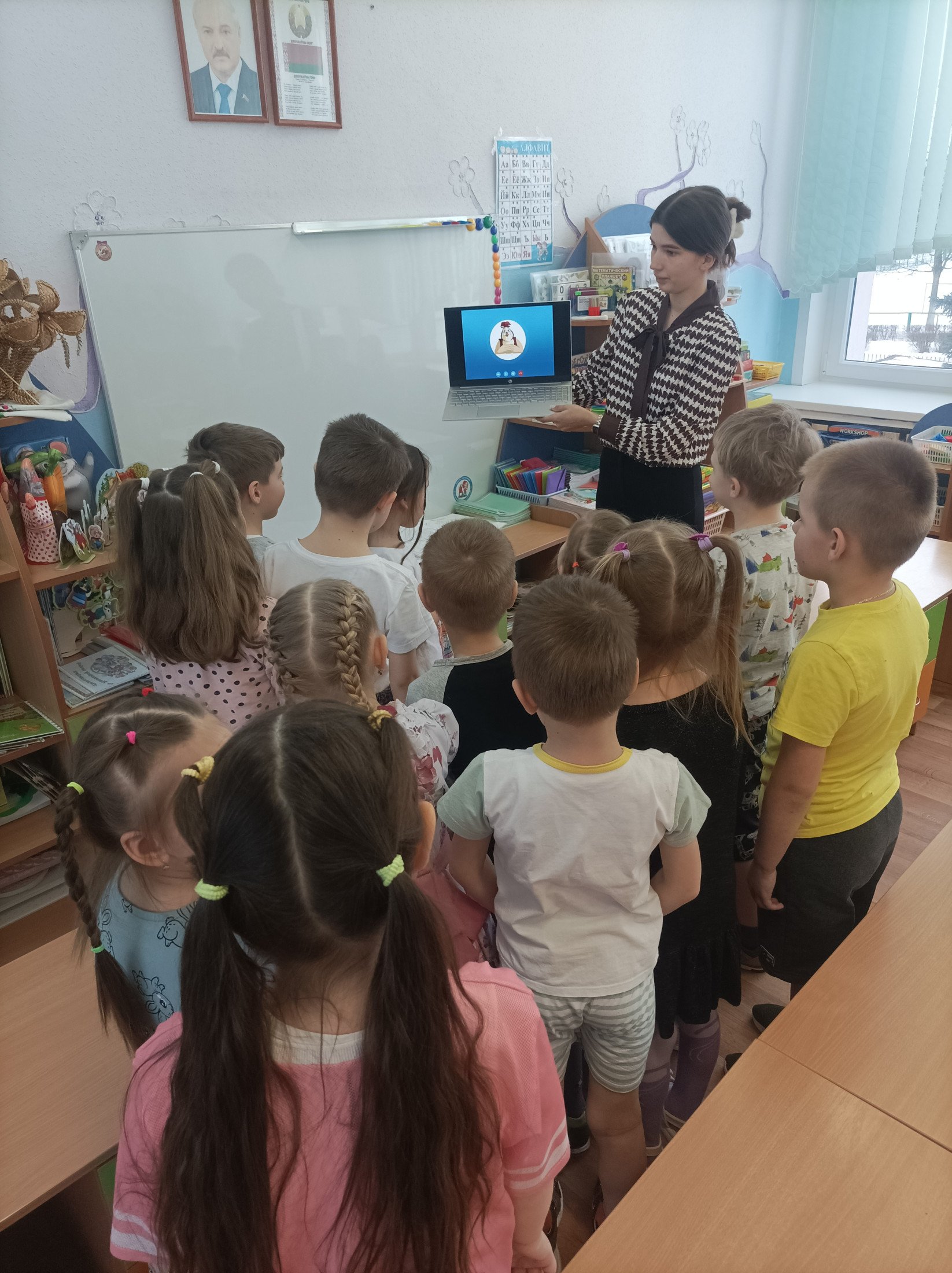 Сегодня в нашем детском саду воспитатель дошкольного образования Адамович Г.Г. провела открытый просмотр нерегламентированной деятельности (квест-игра "Что? Где? Когда?) с воспитанниками старшего дошкольного возраста. Ребята взяли на себя роль знатоков и сыграли против сказочных персонажей, которые подготовили для них непростые задания. В первом раунде "Умею - не умею" знатоки показали отличные знания профессий людей и что умеют делать люди определённой профессии. Второй раунд оценил знания ребят о людях разных профессий, которые работают в общественных учреждениях. В третьем раунде дети с лёгкостью справились с заданием "Определи на ощупь", а в четвёртом показали свои навыки нестандартного решения задач ("Предметы-заменители"). Счёт 4:0 в пользу знатоков!!!