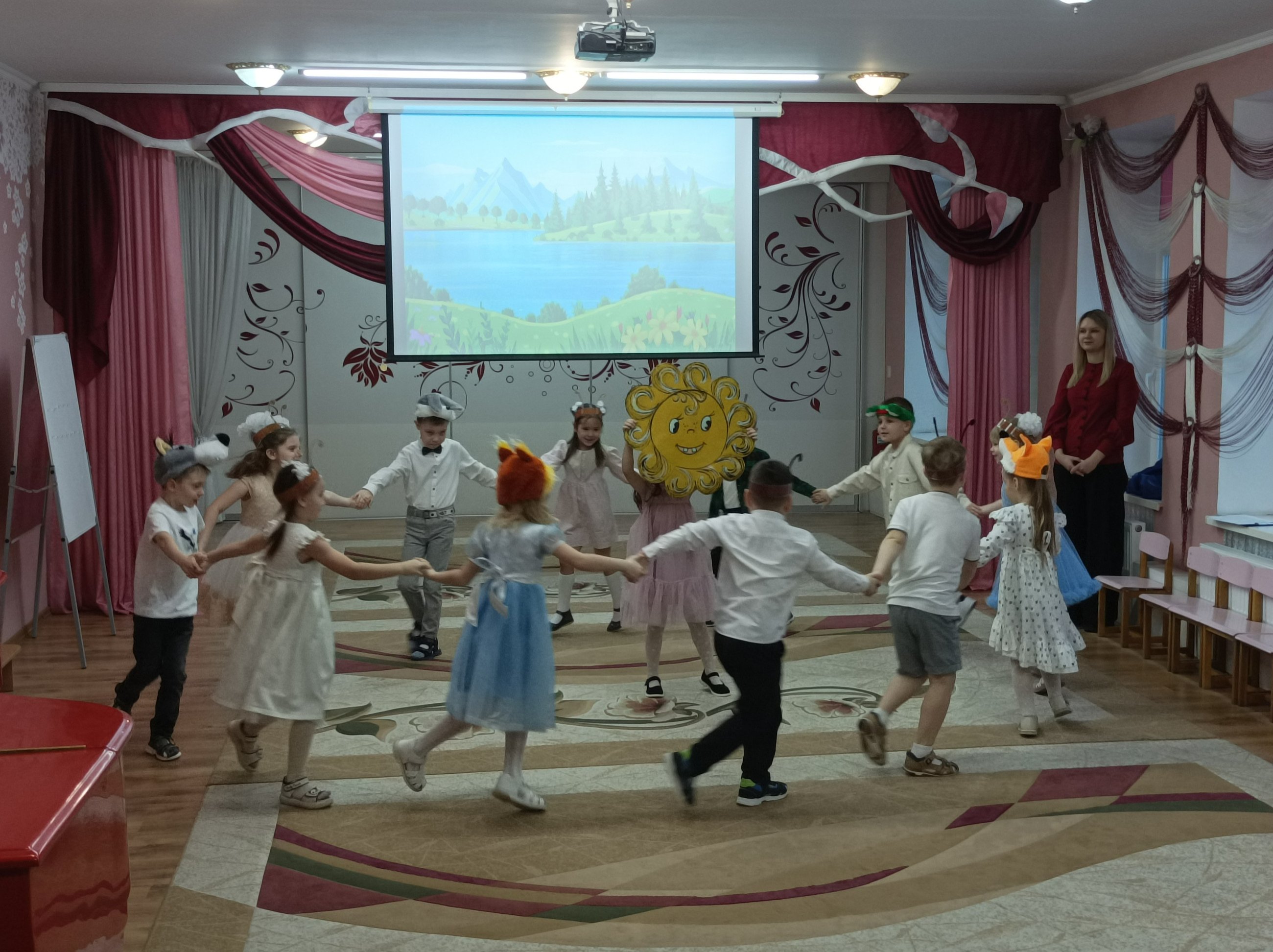 Сегодня на базе ГУО "Детский сад № 9 г. Волковыска" прошло заседание методического формирования музыкальных руководителей учреждений дошкольного образования "Развитие музыкального восприятия воспитанников раннего и дошкольного возраста". В рамках которого, музыкальный руководитель Пашкевич О.М. провела открытый просмотр занятия по образовательной области "Музыкальное искусство" для воспитанников старшего дошкольного возраста (от 5 до 7 лет) "Переполох в Музыкальном Королевстве". Цель данного занятия - развитие музыкального восприятия дошкольников через все виды музыкальной деятельности. Ребята с большим интересом помогали Королеве Музыки вернуть её помощников - средства музыкальной выразительности - Мелодию, Ритм, Лад, Тембр, Темп, которых похитил злой Диссонанс. Учавствуя во всех видах музыкальной деятельности (слушание музыки Э.Григ "Утро", танцевальное творчество, музыкально-дидактическая игра "Ритмические дорожки", "Мажор и Минор", попевка "Скажи погромче", пение "Мажор и Минор", музыкальная игра "Ищи", элементарное музицирование "Вальс-шутка", пляска "Бульба"), ребята с лёгкостью освободили всех помощников Королевы Музыки и доказали Диссонансу, что он тоже необходим в Королевстве Музыки и без его помощи никак не передать образ медведя, волка, урагана, Бабы-Яги, Злюки и т.д. В заключении, за помощь в поисках средств музыкальной выразительности, Королева Музыки подарила детям волшебную музыкальную шкатулку, которая заворожила детей своим звучанием.