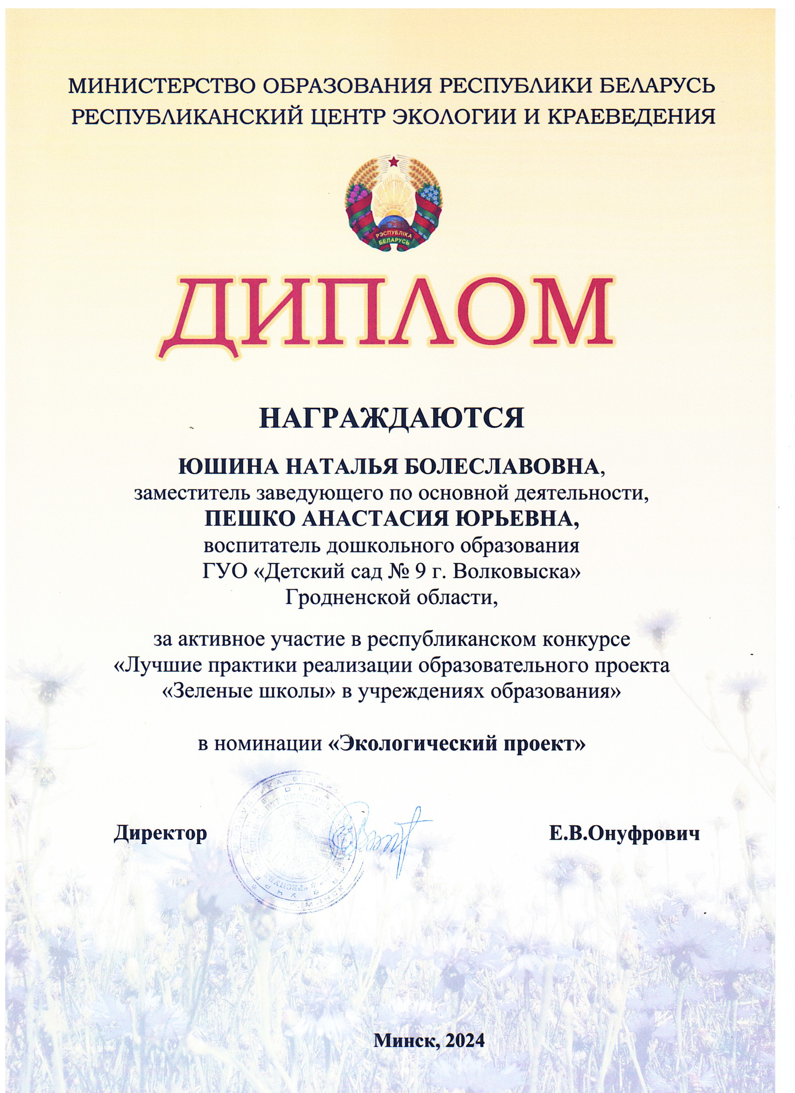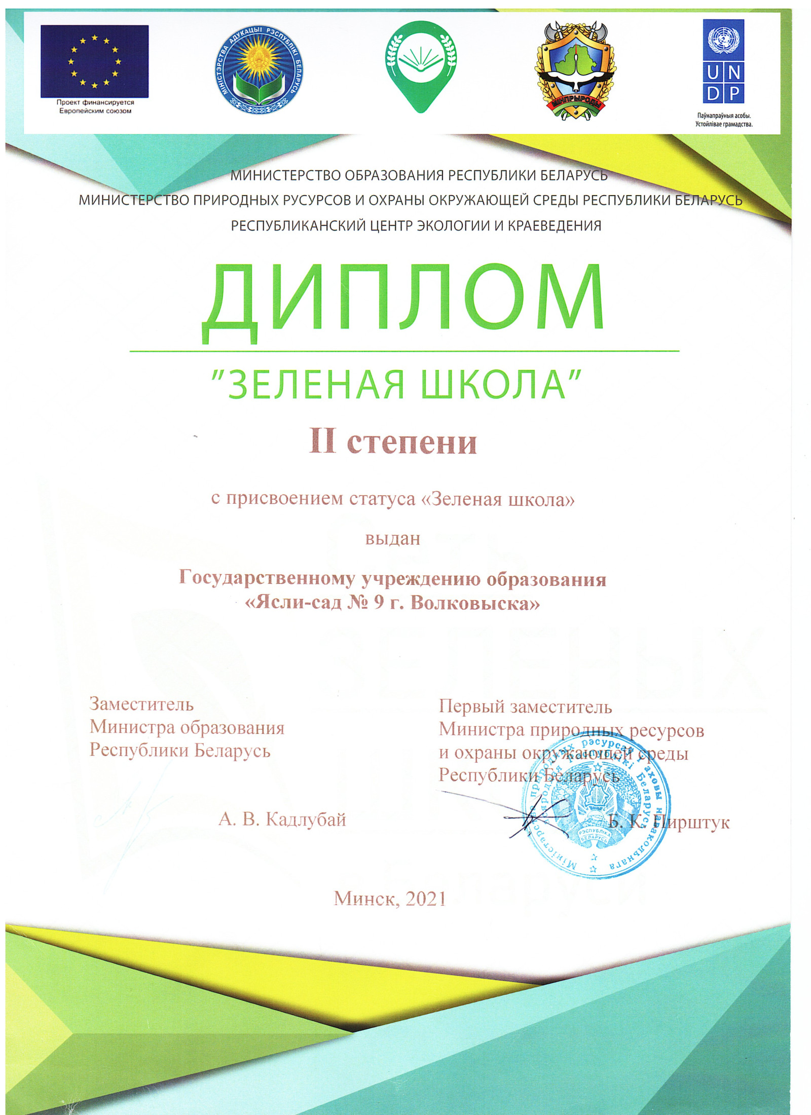 - развитие сотрудничества между учреждениями образования, участвующими в реализации проекта, территориальными органами природных ресурсов и охраны окружающей среды, местным населением.Проект "Зеленые школы" координируется Министерством образования Республики Беларусь, Министерством природных ресурсов и охраны окружающей среды Республики Беларусь. Партнером проекта "Зеленые школы" выступает открытое акционерное общество "Белорусский банк развития и реконструкции "Белинвестбанк".